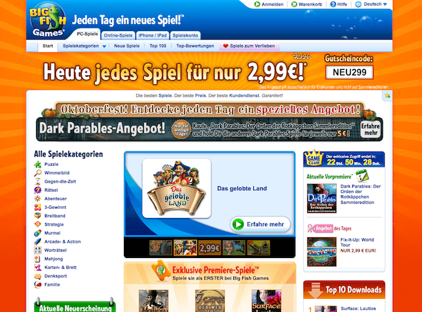 Nicht nur die Auswahl besticht durch ihre Vielfältigkeit, auch die Handhabe und die Bestell-Abwicklung sind bei diesem Anbieter besonders einfach. Wer also aktuelle Games wie etwa Ravenhurst, Infected, Dark Parables, Grim Facades oder Secrets of the Seas spielen will, ist bei Big Fish Games genau an der richtigen Adresse. Ähnliche Angebote wie BigFishGames liefern Plattformen wie GamesloadSoftwareload, oder auch Origin.