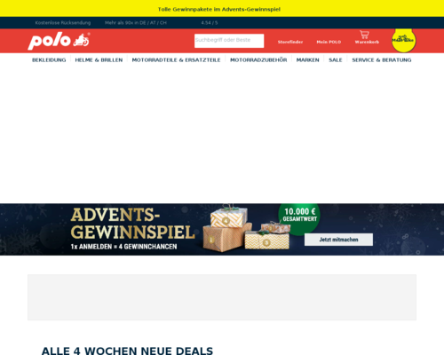 Motorradsport und die POLO Expressversand GmbH gehören einfach zusammen. Der führende Anbieter von Motorradbekleidung, -zubehör und -technik bietet euch eine unglaubliche Produktpalette von mehr als 30.000 Artikeln aus der Ihr bequem von zuhause im großen POLO-Internetshop auswählen könnt. Doch nicht nur die Leistung überzeugt, auch die Preise sind überraschend niedrig. Und nicht zuletzt wird sich auch für den kleinen Geldbeutel in der Restposten Sparte etwas finden lassen. Wer ein Motorrad sein eigen nennt oder mit dem Gedanken spielt sich eines zuzulegen, ist hier auf jeden Fall am richtigen Platz. Vor-Ort Betreuung bietet nötigenfalls einer von 95 Polo-Shop Standorten in Deutschland. Alle verfügbaren Montagepartner des Unternehmens und die Polo Filialen können dabei über eine interaktive Landkarte oder per Postleitzahl Suche abgerufen werden.